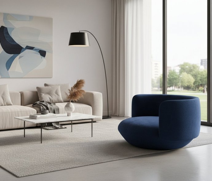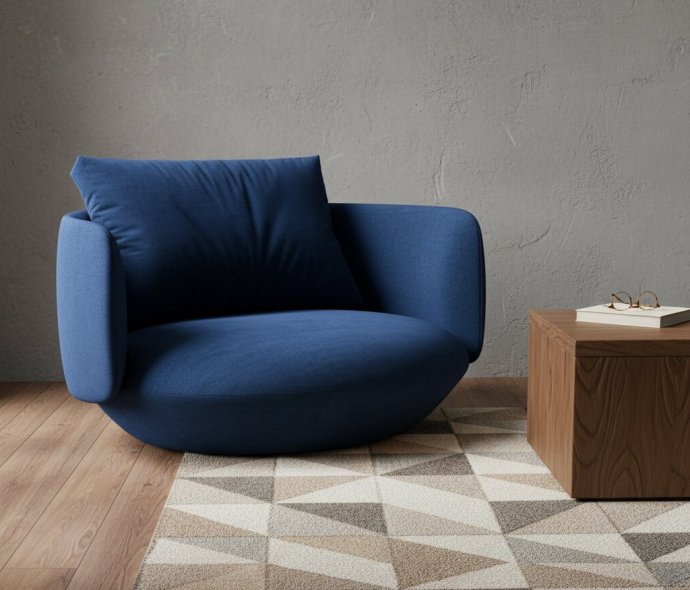 Уютное мягкое кресло для дома будет легко смотреться в современном интерьере. Его плавные линии и отсутствие острых углов создают ощущение гармонии и спокойствия. Кресло можно выполнить в любой обивочной ткани. Цена на сайте указана в базовой ткани. Ознакомиться с мебельными тканями можно у нас в шоу-руме либо дистанционно.