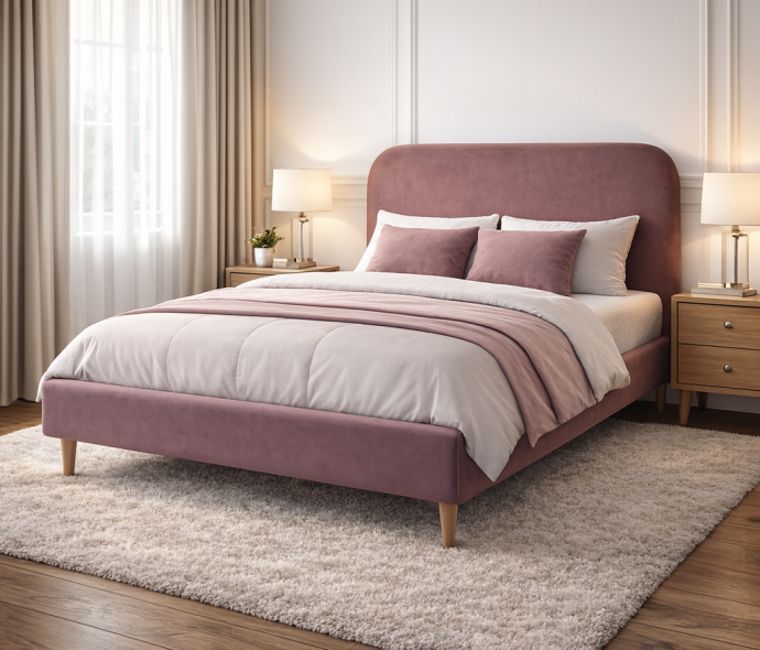 Кровать без подъемного механизма на изящных деревянных ножках. Цвет ножек подбирается индивидуально. Кровать выполнена из качественных материалов, расцветка и фактура мебельных тканей может быть различной. Изголовье кровати обшивается мебельной тканью по всей площади спинки. Ножки: дерево, круглые высотой 20 см. Такая высота ножек легко позволяет выполнить влажную уборку под кроватью. Три варианта цвета на выбор: белый, натуральное дерево, венге.