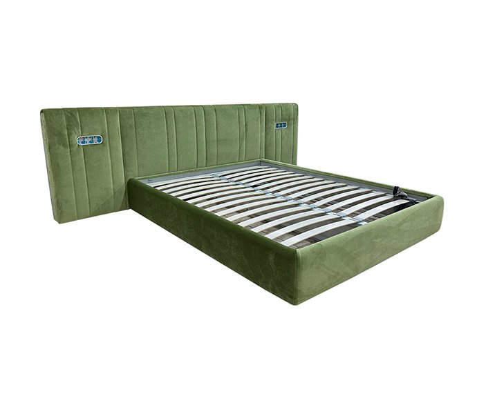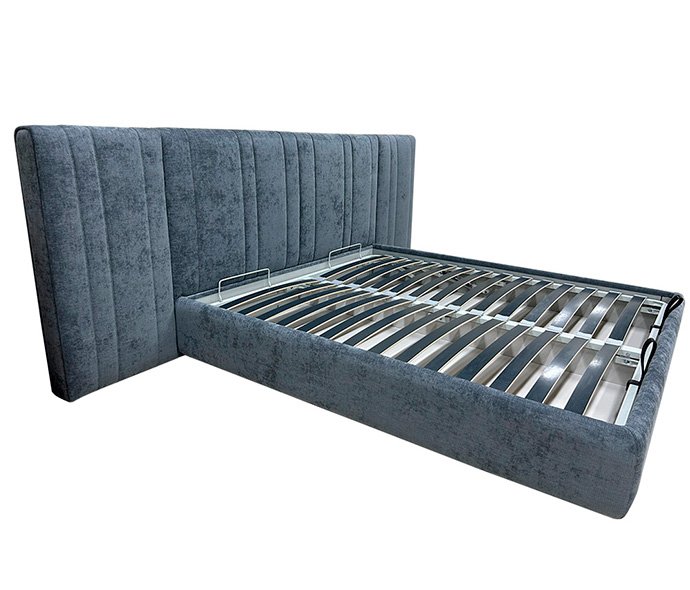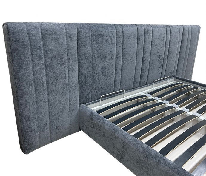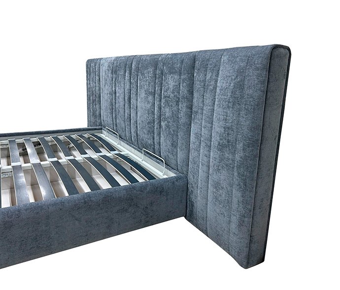 Модная отстрочка изголовья кровати в виде вертикальных полос придает уникальность данной модели. Кровать выполнена из качественных материалов, расцветка и фактура мебельных тканей может быть различной. Кровать комплектуется просторным ящиком для белья. Основание с бельевым ящиком комплектуется раздвижными полами. На основании - съемные чехлы. В комплекте металлическая ортопедическая решетка. Кровать выполнена из березовой фанеры и МДФ. Кровать комплектуется 4-мя опорами, высота 35 мм от пола до царги.