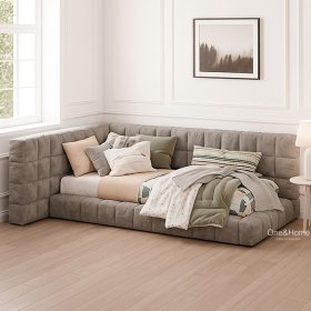 Кровать выполнена из качественных материалов, расцветка и фактура мебельных тканей может быть различной. Изголовье кровати обшивается мебельной тканью по всей площади спинки. Кровать с подъемным механизмом комплектуется раздвижными поликами, которые в свою очередь делают уборку доступной и легкой. Cпинка украшена классическими текстильными пуговицами в тон обивочного материала.