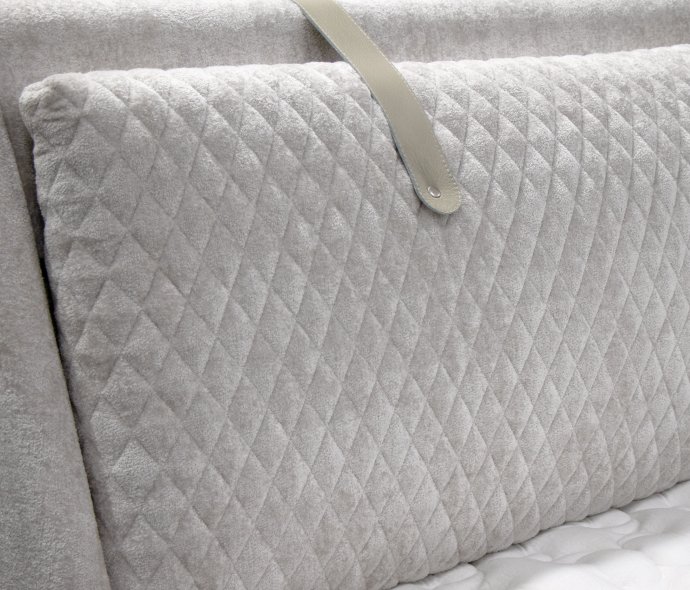 У данной модели кровати - регулируемая подушка на изголовье. Благодаря двум молниям на внутренней стороне подушки вы легко подстроите высоту под свои предпочтения: выберете более высокое или низкое положение. Мягкая спинка обеспечивает идеальную поддержку спины и плеч во время чтения, просмотра фильмов или отдыха в постели.