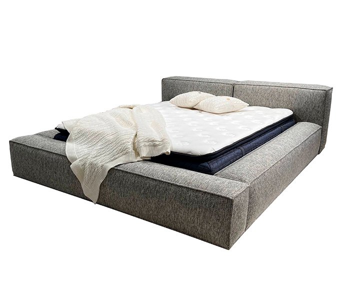 Мягкая кровать Neo - это совершенно новый и современный взгляд на кровати. Её можно расположить как у стены, так и по центру комнаты. На боковинах кровати можно сидеть как на пуфе. Кроватное основание: фанера березовая и МДФ. Основание-решетка состоит из стальной рамы, разделенной вдоль на две секции. Каждая секция заполняется специальными латами, которые изготавливаются из березы. Подушки: высокоэластичный ППУ, синтепон. Ознакомиться с мебельными тканями можно у нас в шоу-руме.