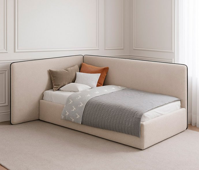Данная детская кровать имеет две спинки, что придает ей оригинальный и уютный вид. Одна из спинок выступает за пределы основания, создавая эффект "объема" и добавляя интересный акцент в дизайне. Кровать доступна в различных цветовых решениях — от пастельных до ярких оттенков, что позволяет легко вписать ее в интерьер комнаты. Кровать с подъемным механизмом имеет вместительный бельевой ящик, что позволяет хранить в нем не только комплект постельного белья, но и массу других вещей, помогая сэкономить пространство комнаты. По периметру боковая спинка и спинка в изголовье кровати декорированы кантом, цвет которого может быть различным. Чехол для матраса, декоративные валики и подушки приобретаются отдельно. Также такая модель кровати доступна с высотой 80 см.