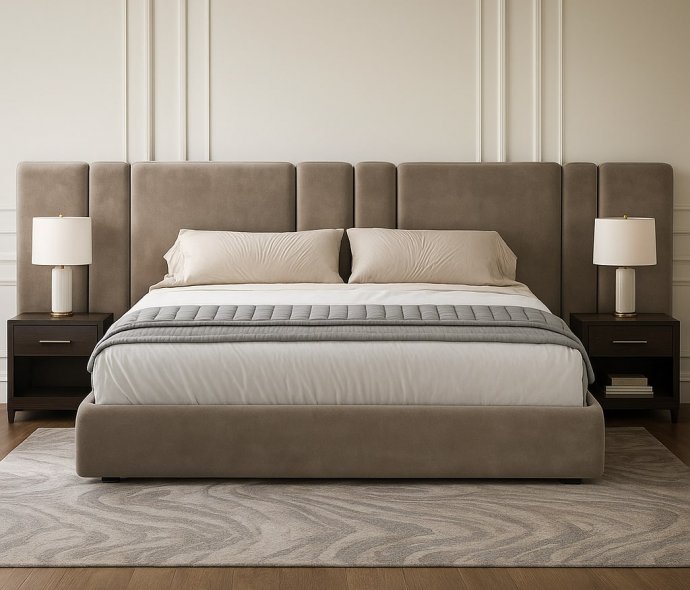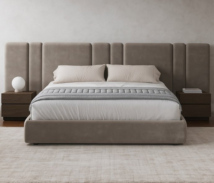 Мягкая кровать Raya Long серая с подъемным механизмом