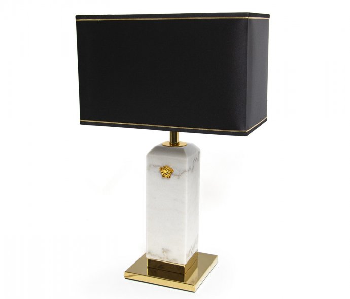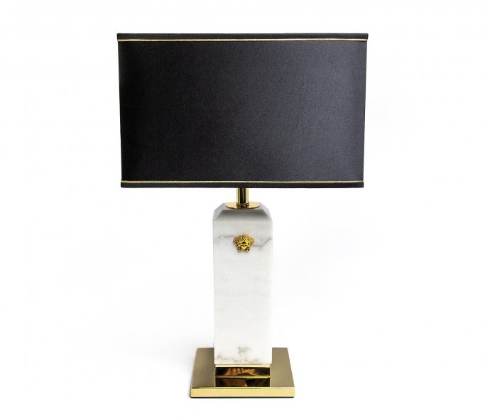 Настольная лампа “Верса” – это элегантный источник света, сочетающий в себе роскошь и современный дизайн. Основание лампы изготовлено из натурального мрамора и золотого металла, придавая ей благородный и стильный вид. Прямоугольный абажур черного цвета с золотым кантом гармонично дополняет композицию, создавая эффектный контраст.
