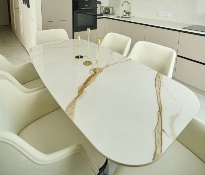 Стол идеально вписался в наш интерьер, именно то, что так долго искали. Нашли его случайно на сайте, а заказ уже оформляли непосредственно в шоуруме. Консультант максим очень вежливо все объяснил, по нашему желанию поменял цвет столешницы на светлый. Заказ изготовили точно с рок, без задержек. Качество стола на высоте, прочно закреплена сама столешница, крепкое металлическое подстолье. Очень им довольны!