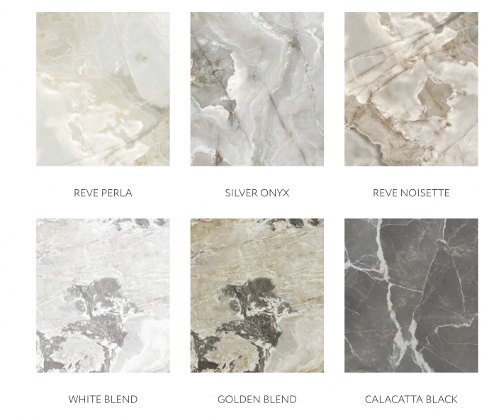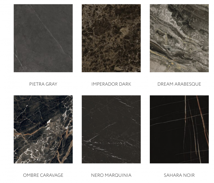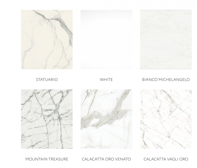 Столешница выполнена из керамогранитного покрытия с точной имитацией натуральных пород мрамора. Подстолье: металл. Выполнение на заказ в выбранном цвете металла и керамики.