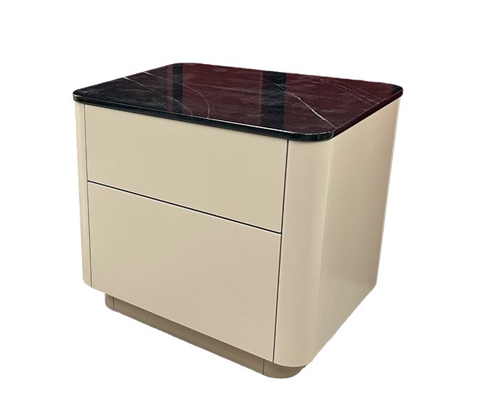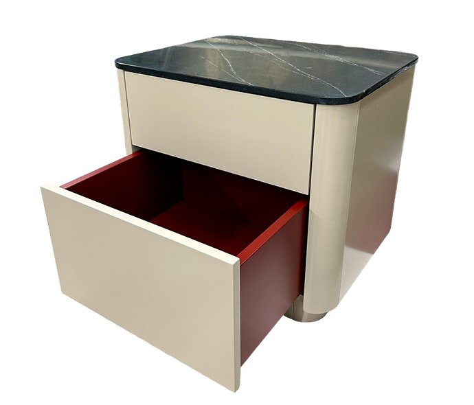 Элегантная тумба с двумя выдвижными ящиками станет незаменимым атрибутом мебели в вашей спальне. Благодаря скругленным боковинам создается гармония и уют в вашей комнате. На выбор несколько базовых цветов эмали, либо можно подобрать любой другой цвет по RAL или NCS каталогу. Два варианта топа (эмаль или искусственный камень).