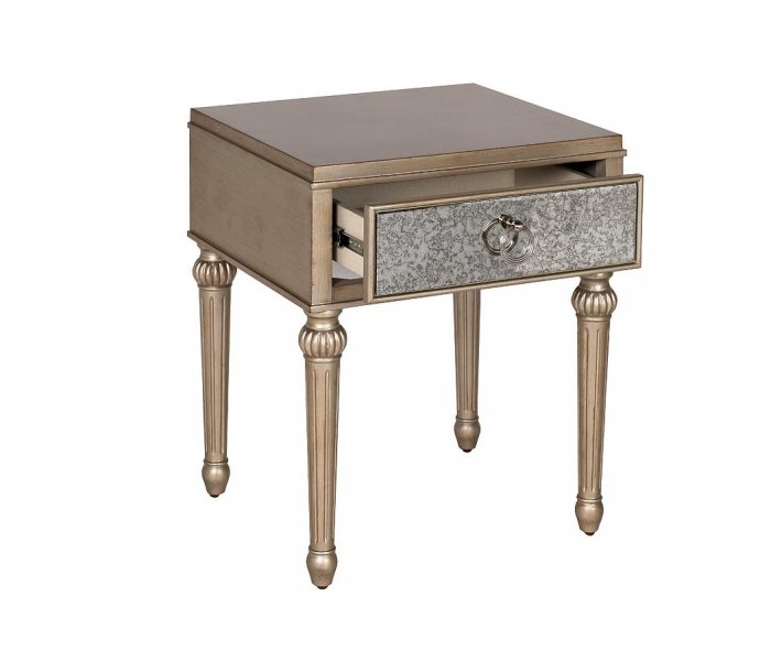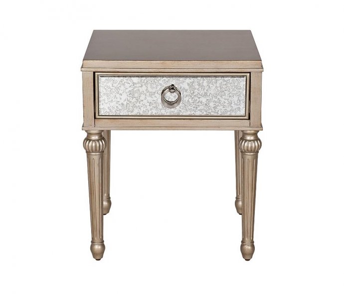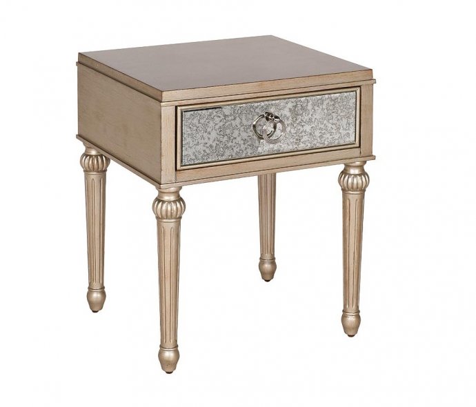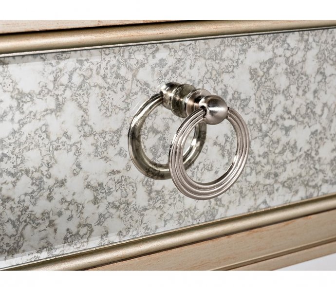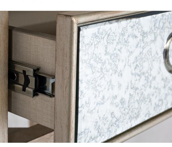 Элегантная тумба с изящными точеными ножками и выдвижным ящиком, отделанная искусственно состаренным зеркалом цвета antique silver, украсит вашу спальную комнату, кабинет или гостиную. Она не занимает много места, поэтому подойдет даже для небольшого помещения. Оригинальная тумба превращает спальню в изысканный будуар, а прихожую - в аристократичный холл.