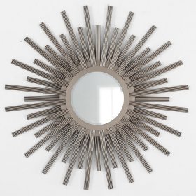 Большое настенное зеркало в оригинальной зеркальной раме расположенной под углом относительно центрального полотна и окантованного элегантным кантом.